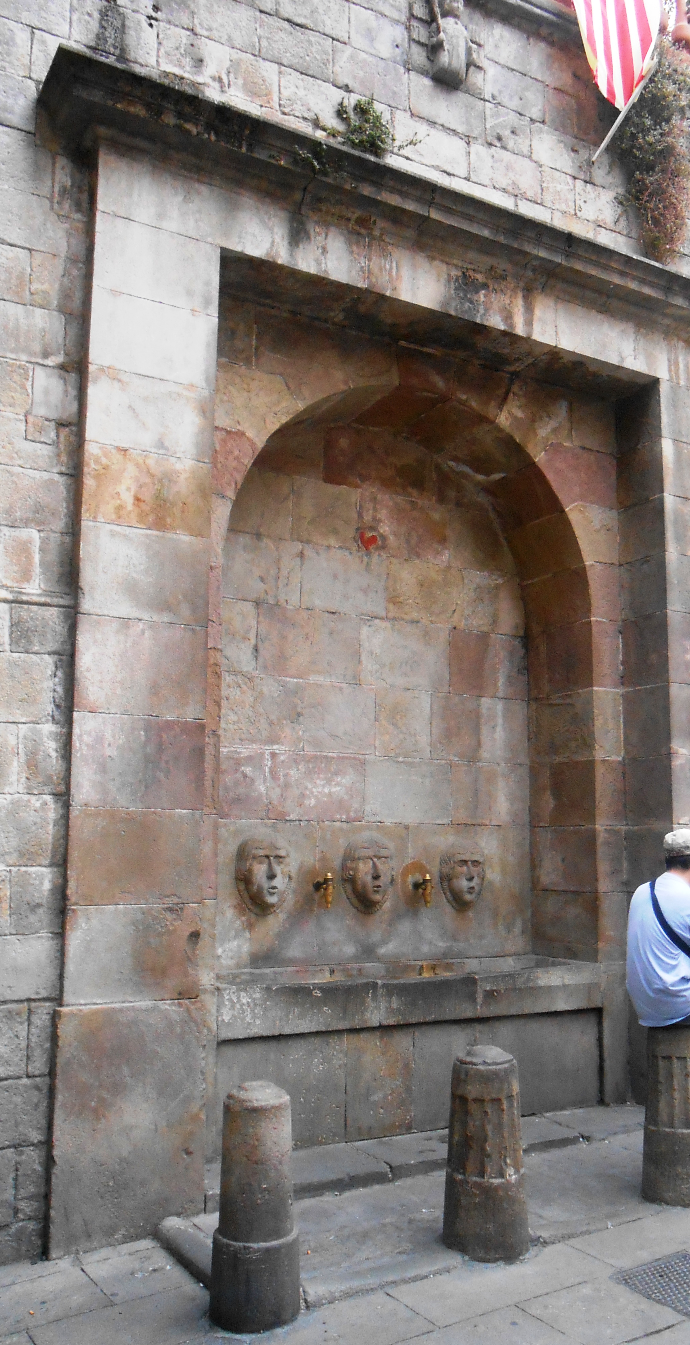 Disposava de tres aixetes inserides en els mascarons o cares, en la última remodelació, va passar a tindre dos aixetes situades al mig de les cares.