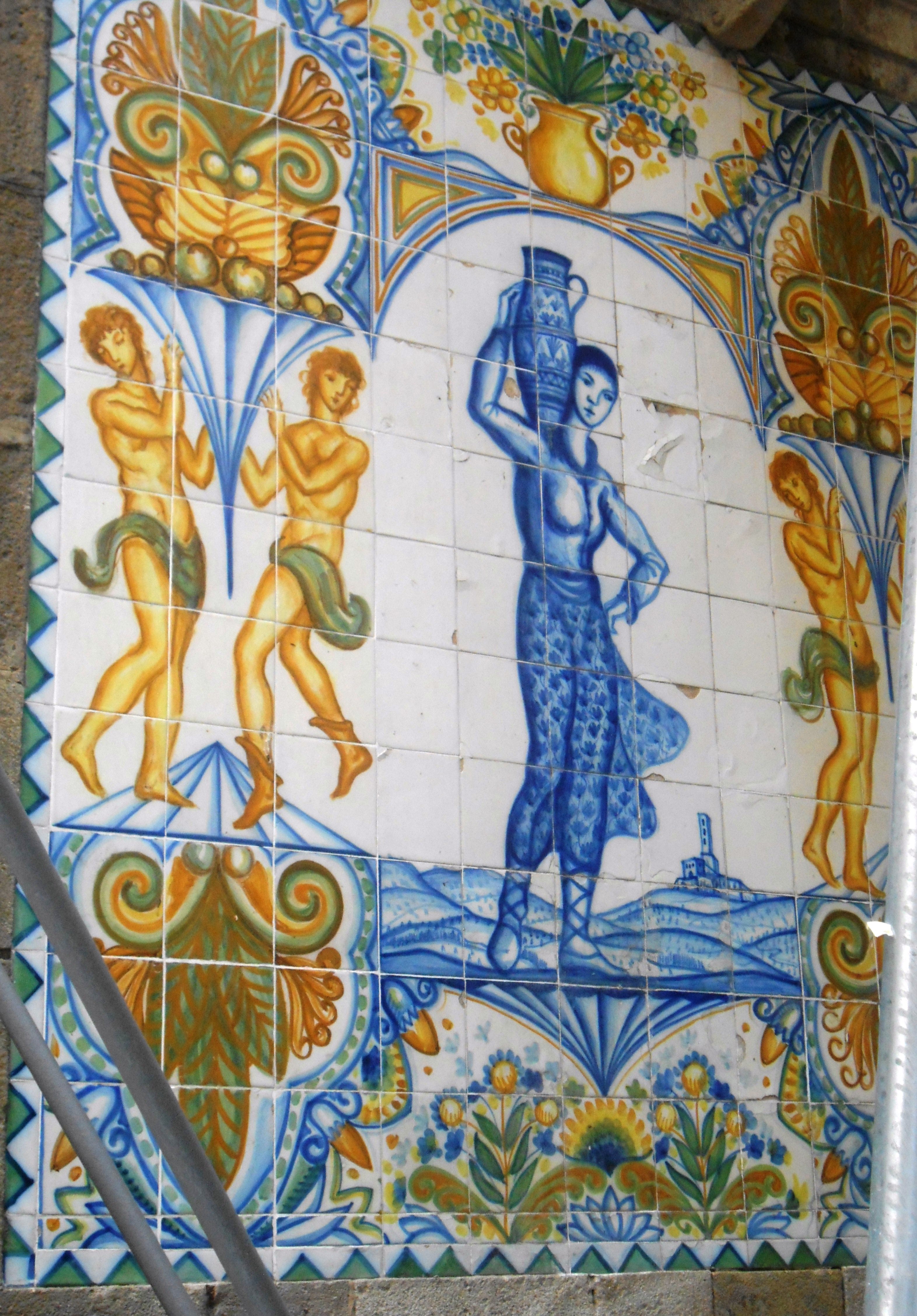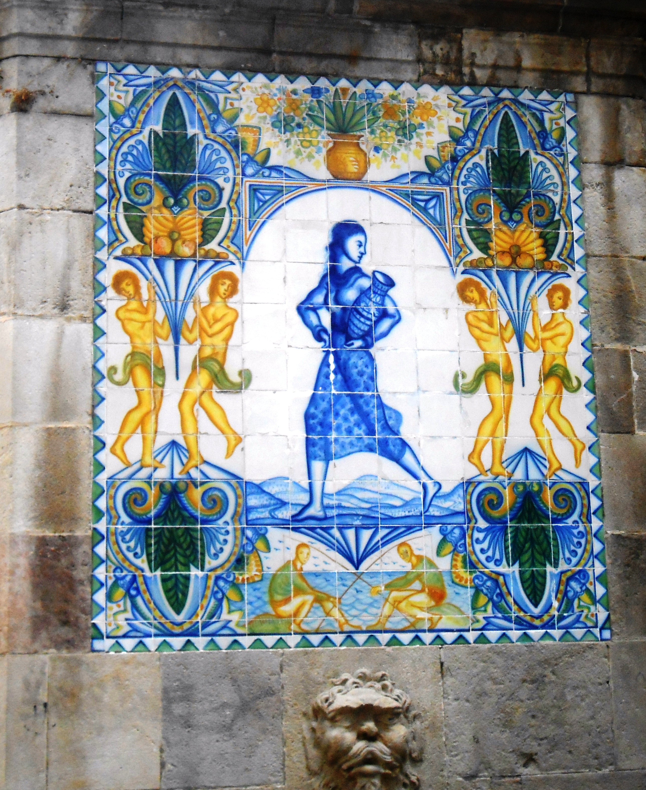 En 1918 es van fer reformes i es va decorar amb les rajoles que podem veure en l’actualitat, sota de l’escut de la ciutat hi ha dos àngels, i en cada cara veiem diferents imatges de dones que van a buscar aigua.DSCN1142DSCN1141DSCN1140DSCN1138