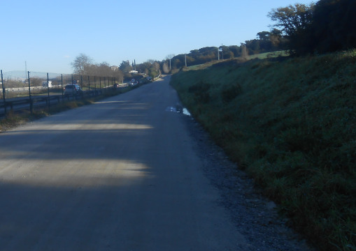 fins arribar a un ample camí que va paral•lel a l’Autopista, fins un túnel que passa per sota d’aqueta i de l’AVE, fins l’altra costa on hi ha el camí ample a l’esquerra nostra direcció als Maristes, el recorregut es poc mes d’un quilòmetre.