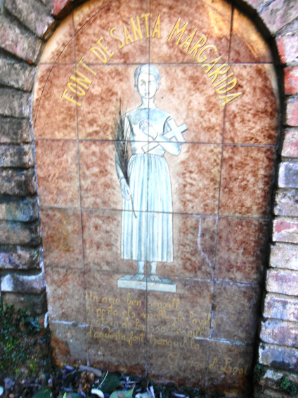 La trobarem en un racó del torrent , a cada costat de la font hi han uns seients i de munt de la sortida de l’aigua , hi ha una imatge moderna de Santa Margarida feta de rajoles.