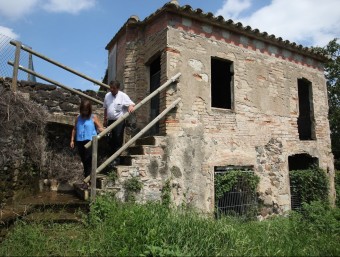 L’alcaldessa de Vilobí i el regidor Joan Viñolas, a tocar del molí Foto: LLUÍS SERRAT.