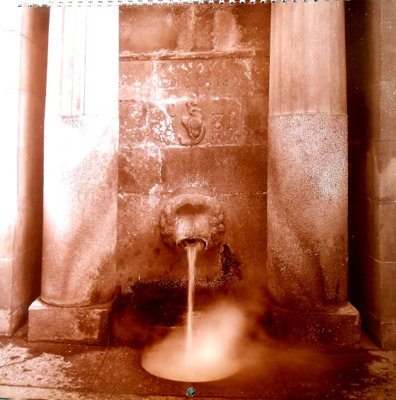 Cada mes hi ha la fotografia d’una font urbana o natural, la característica, es que van ser editades a un sol color i amb els dies corresponents de cada mes.