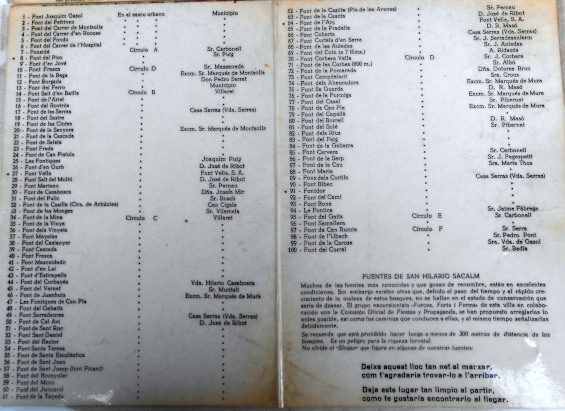 Sant Hilari de Sacalm, coneguda com la Vila de les Cent Fonts o per La Font de Catalunya, es degut que hi ha mes de cent fonts dins del seu municipi. Per això, es va editar un fulletó en forma de plànol desplegable amb la situació de les fonts i punts importants a visitar del seu terme Municipal.