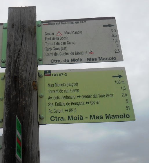 Cal creuar la carretera de Moià i agafar un camí estret que passa per davant de Mas Manolo, i ens porta en poc temps a la carretera de Santa Eulalia de Ronçana, en aquest punt, hi a una empresa de productes de jardineria i complements, seguirem la pista que surt d’aquest lloc,
