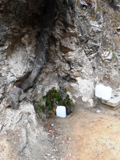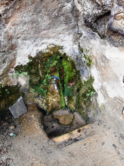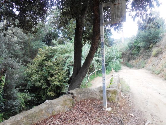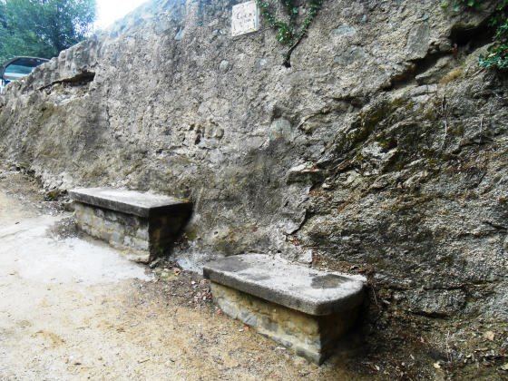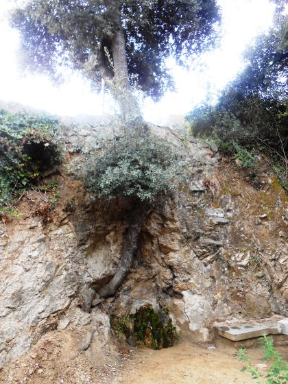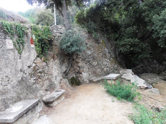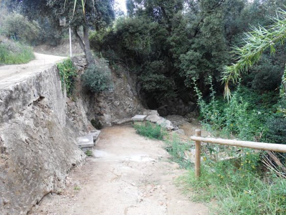 que es un camí ample de terra, a pocs metres i a ma dreta i al costat del torrent i en un recó, hi a aquesta font de tanta anomenada.