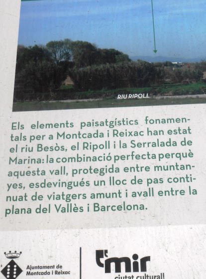 Hi ha un cartell informatiu, en la vora dreta del riu ripoll, a l’altura de l’Avinguda de la Ribera, front de l’aiguabarreig del riu Ripoll amb el Besos.