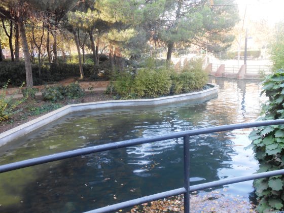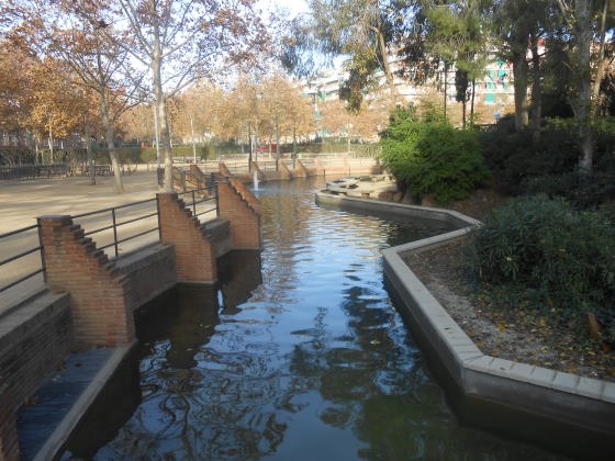Cal diferenciar tres àrees principals : la de jocs infantils; la zona esportiva; i una zona d’aspecte mes arquitectònic, amb parets i columnes amb pèrgoles; i l’element mes destacat del parc que és l’estany,