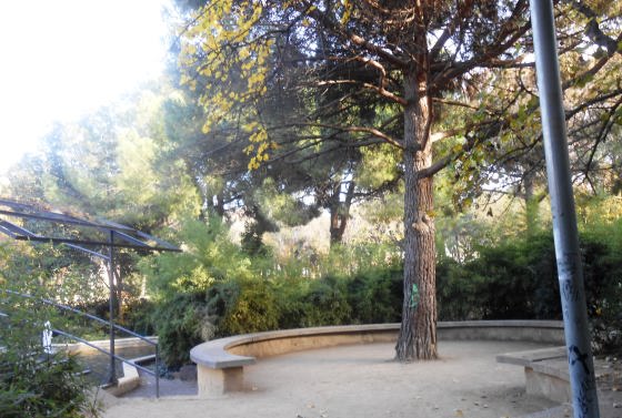 Es molt destacat l’amplia quantitat de bancs de fusta així com de pedra, molts d’ells circulars, situats en diferents llocs i racons del parc.