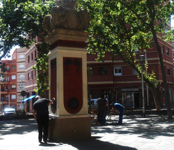 Després de la guerra les lletres que encapçalen la font foren trencades, amb el desig d’esborrar tot allò que sonés a català.