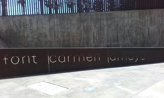 barceloneta00027_01Aquesta Font va ser dedicada  a Carmen Amaya, està situada en la plaça de Brugada i  dona l’esquena al Passeig Marítim en la Barceloneta, obra de l’escultor Rafael Solanic.barceloneta00026_01Va ser inaugurada durant l’any 1959.font-carmen-amaya_01I va ser restaurada per l’Ajuntament , l’any 2011, donat el seu estat de deteriorament.IMG-20160814-WA0003_01L’Aigua quan surt pels tres brocs metàl·lics, no es apte per beure, així esta indicat per medi d’un cartell.IMG-20160814-WA0002_01Us passo l’enllaç dels actes commemoratius portats a terme per els veïns de la Barceloneta, el juliol de 2013, en aquesta Font :