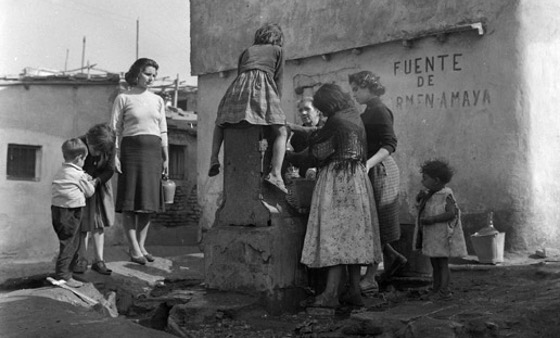 Somorrostro-1960-Font-Carmen-Amaya.Sols dir que en la plaça hi trobarem una font amb aigua de xarxa.