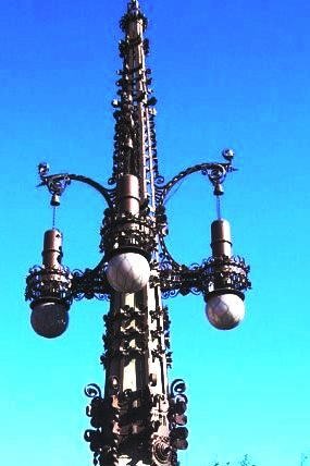 En cada extrem dels tres primers trams de l’avinguda Gaudí, s’hi ubiquen uns fanals modernistes, dissenyats per Pere Falqués, amb una base de pedra esculpida per Alfons Jujol i la part superior de ferro forjat per Manuel Ballarín.