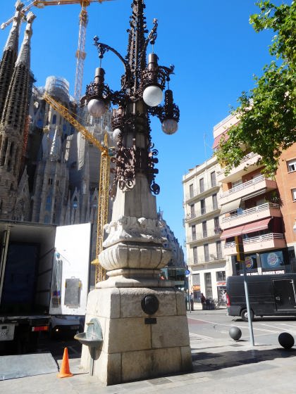 La Farola que toca als carrers Provença amb Avinguda Gaudi, te la particularitat de disposar en dues cares d’una Font amb pica i al centre la imatge lateral del cap de Gaudi.