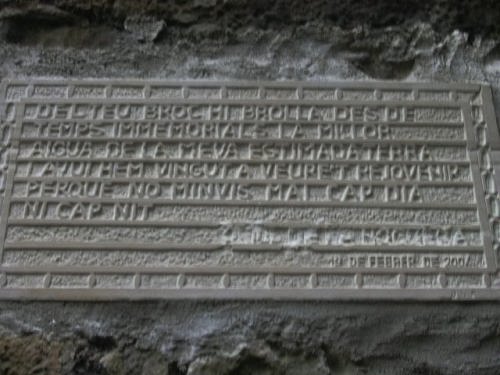 “Del teu broc hi brolla des de temps immemorials la millor aigua de la meva estimada terra i avui hem vingut a veure’t rejovenir perquè no minvis mai cap dia ni cap nit.”