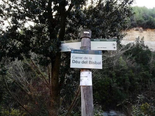 En un extrem de l’aparcament surt un camí direcció a la Riera de Marganell, trobareu un pal indicador que us orientarà per anar a dues fonts, la del Bisbal, que ja us vaig indicar el diumenge passat i a la Font del Ferro objectiu d’avui.
