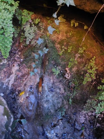 Cal seguir pel sender a munt, cada vegada us costarà mes de caminar, hi ha llocs de certa altura, a uns deu minuts, en una petita corba del camí, hi ha una desviació a l’esquerra que us portarà directament a la Font Fresca, és un lloc humit i ple d’aigua a terra pràcticament tot l’any.