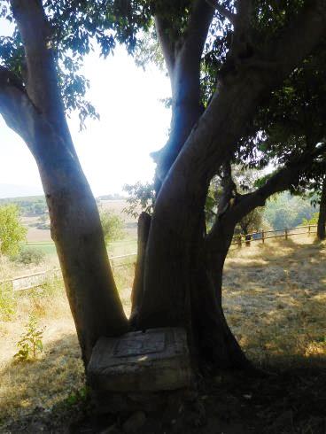 En els seus peus hi ha una base de pedra per moldre d’un molí, que a la vegada fa de seient als visitants d’aquest lloc…