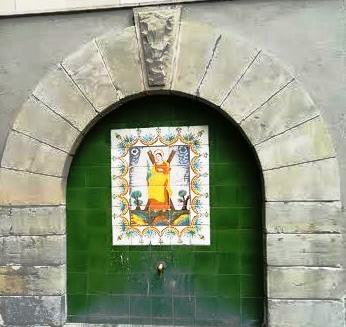 La Font de l’Hospital, està situada al carrer de Sant Rafael d’Olot  al costat de l’entrada a l’Antic hospital de Sant Jaume.Trenta rajoles representen a Sant Andreu, cal destacar la bonica sanefa, que tanca el conjunt, feta amb motius florals estilitzats, predominant els colors taronges, verds i blaus.El Sant va ser representat amb els seus atributs: la creu -on va ser torturat- i la palma que l’identifica com a màrtir. Cromàticament predominen els grocs i els taronges-marrons, envoltat per un grup de rajoles verdes llises.La Font de l’Hospital és una obra d’Olot inclosa a l’Inventari del Patrimoni Arquitectònic de Catalunya.
