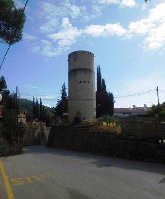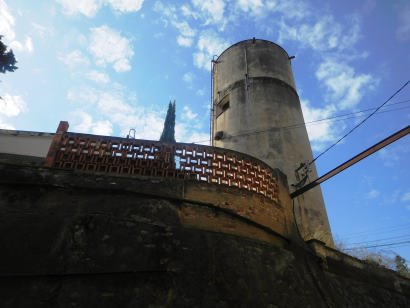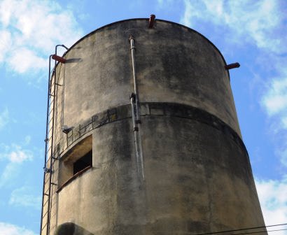 En la torre, que també es cilíndrica, disposa d’una finestres de ventilació del seu interior, en un costat hi ha una escala metàl·lica que facilita la pujada al dipòsit.