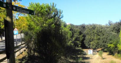 Esteu ja dins de zona de bosc, deixareu a darrera el pou i banc de Can Millet, continueu amb una certa pujada fins que arribareu a una explanada protegida per una barana,