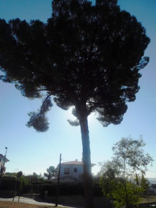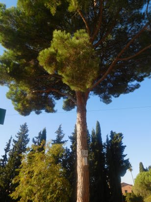 Aquest Pi és pinyoner, destaca per tindre un tronc recta, alt i gruixut, amb un copa arrodonida i gran. Es veu que es troba en bon estat.
