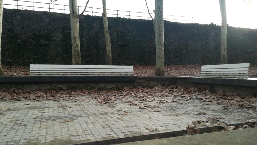 A cada costat de la font, disposa d’un seient de pedra que fan una forma de semi circumferència.