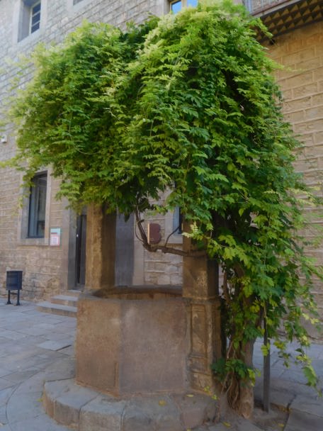 Aquest Pou està dins del gran patí de l’antic Hospital de la Santa Creu i Sant Pau de Barcelona. Concretament situat en un dels costat del patí.