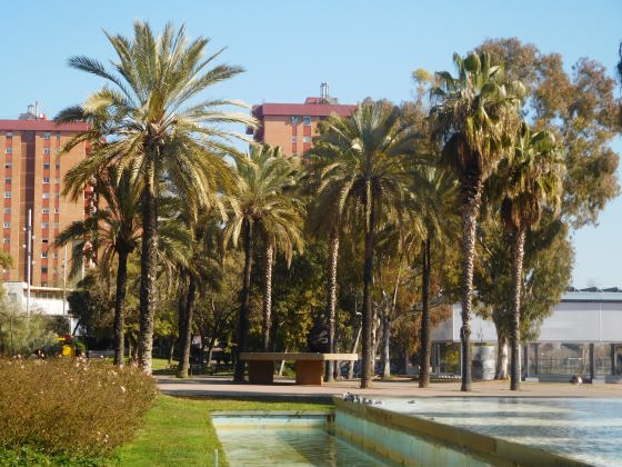 Prop de la Font Màgica, destaquen més d’una vintena de palmeres washingtònies, la majoria alineades, un grup d’eucaliptus, i altres com de pebrers bords, de til·lers, de xicrandes, bellaombres, pollancres del Canadà, àlbers, acàcies de Constantinoble, arbres ampolla i lledoners.