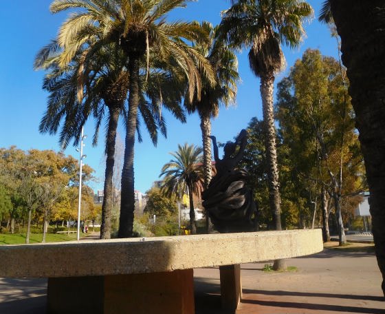 En el recinte sobre una gran peanya de formigó es troba una escultura d’una «balladora» flamenca titulada Alegrías, obra d’Ignasi Farreras Casanovas d’any 1998.