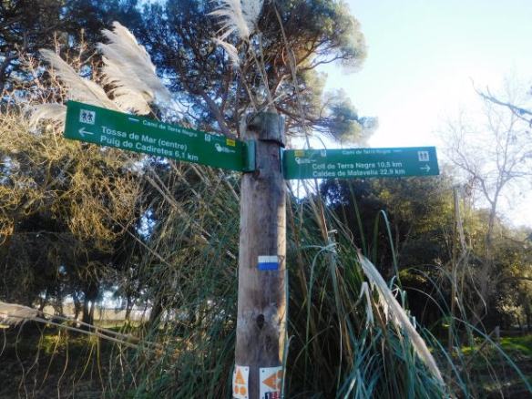 Deixareu de fet, l’avinguda de Catalunya i estereu en un camí de terra, amb molta ombra gracies a la varietat d’arbres, sobre tot de Pins i d’Alzines.