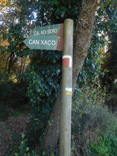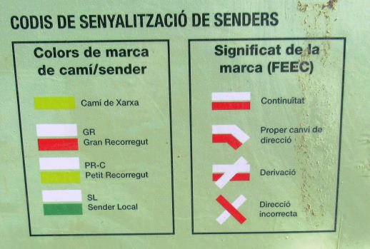 les trobareu pintades, en parets, roques, en el tronc d’un arbre i en altres punts del tresat i que es permeti pintar i ser vistes fàcilment i a doble sentit, segons d’on vingui la gent.