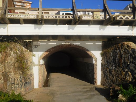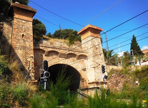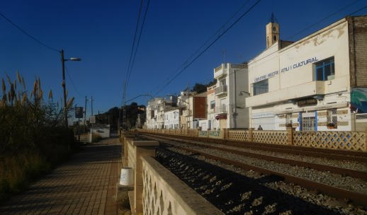 passant per sota les vies del tren, pel pas subterrani, cal seguir paral·lels a les vies de tren, en aquest cas, direcció a Barcelona.