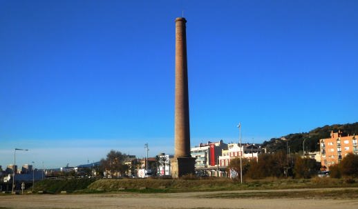 Ara, us cridarà l’atenció de la figura allargada d’un xemeneia, que tot el que queda del record d’una fabrica allí existent.