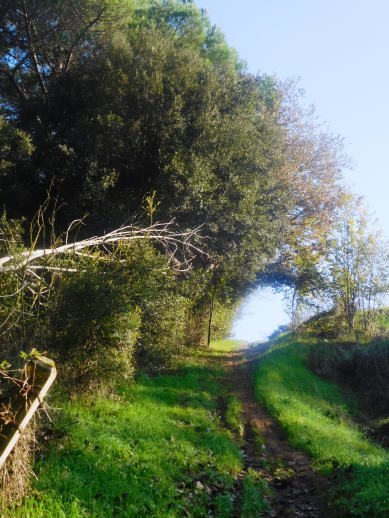 on podeu deixar el vehicle, i cal agafar un petit sender que baixa primer al torrent del Sot de Mal infern i mes tard creua per una passera La Riera de Brugueres .