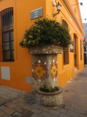 - A prop del roserar hi ha una font de ceràmica coronada amb un brollador,