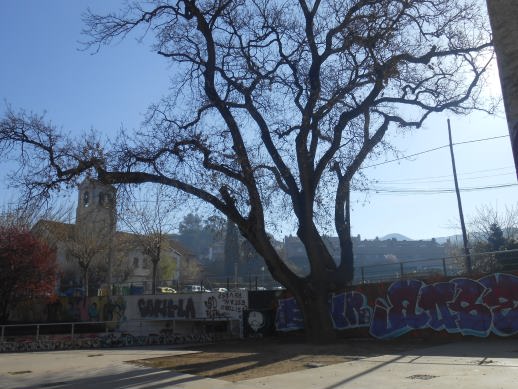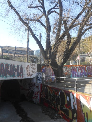 curiosament unes branques estan recostades en un costat del carrer Buxó Baliarda que passa a un nivell mes alt.