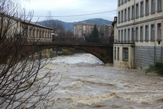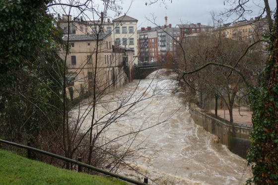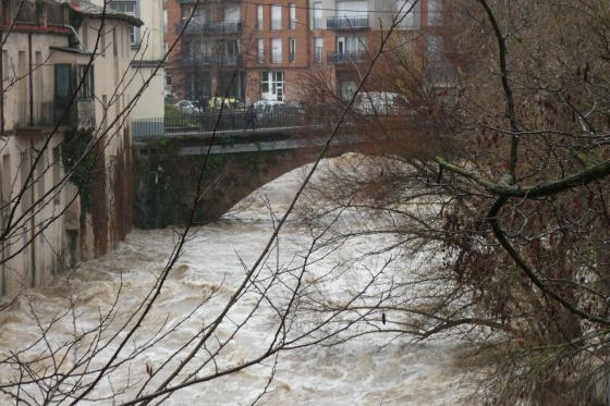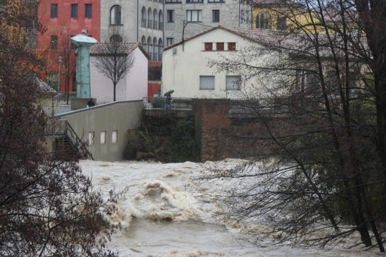 Us passo imatges de la crescuda molt important del riu Fluvià, són realitzades aquest mateix mati sobre les 10 hores.