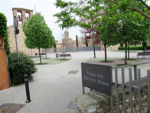 Àrea de jocs infantils, amb l’església de Santa Maria a dalt a l’esquerra.