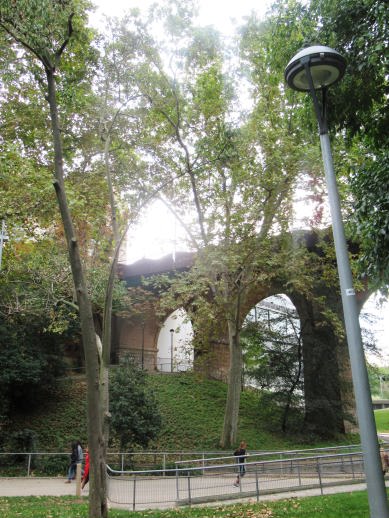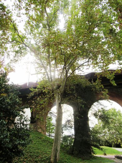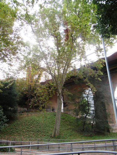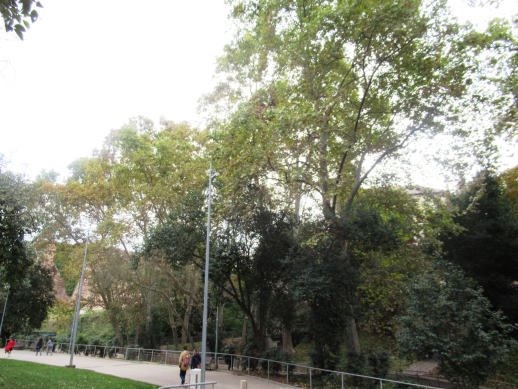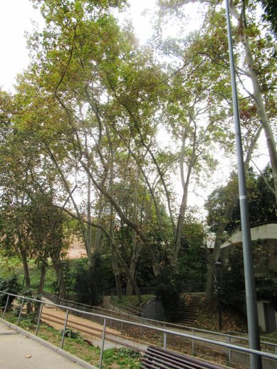 i tot son de tronc gruixut i les branques molt altes que sobrepassant el nivell del pont situat al tocar en l’Avinguda de Jacquard.