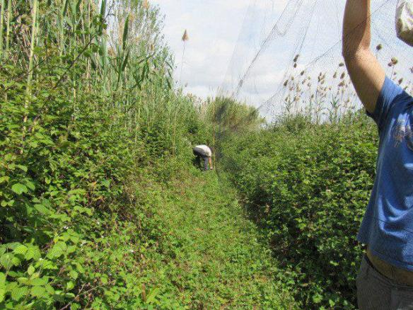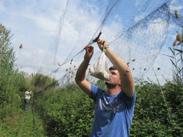 Els ocells són anellats al niu o després de ser atrapats en una fina xarxa japonesa entre altres mètodes de captura usats.