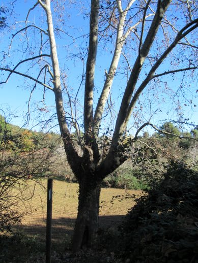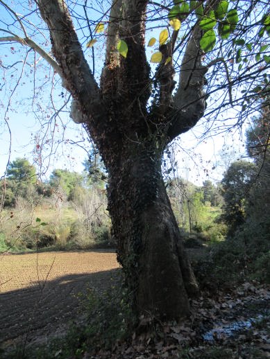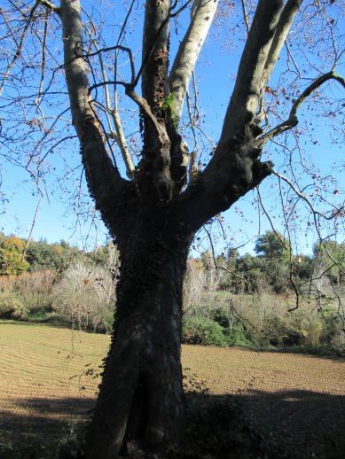 Aquest plataner es molt gruixut i amb branques molt altes que ens fa difícil fotografiar-ho tot complert,