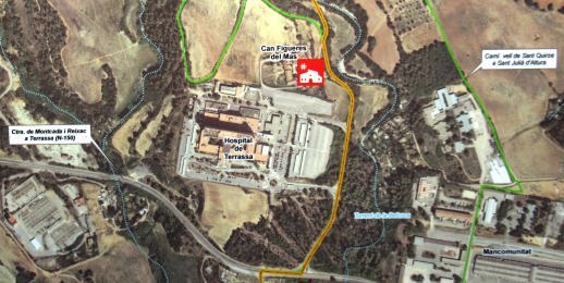 Per poder visitar el Lledoner del Pou de Can Figueres del Mas, cal prendre la carretera N-150, que uneix Terrassa i Sabadell i entrar com si anéssiu a l’Hospital de Terrassa,