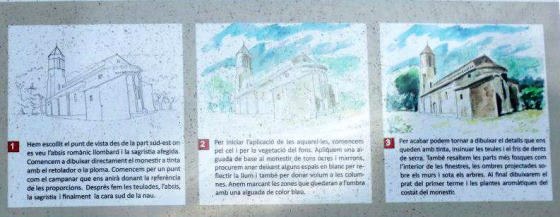 Si la visita forma part d’una escola, es pot fer un dibuix o pintar el monestir baix unes línies que s’expliquen en un cartell.