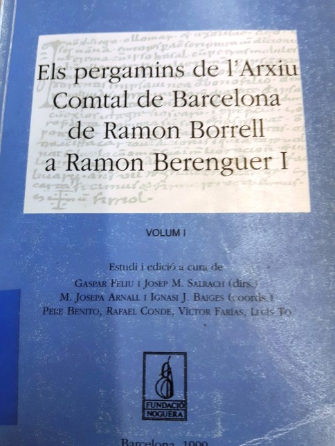 3 Baucells J., Fàbrega, A., et al. (2006). Diplomataris de l’Arxiu Capitular de Barcelona (ACB) segle XI. Fundació Noguera, 37-41. Doc. 878