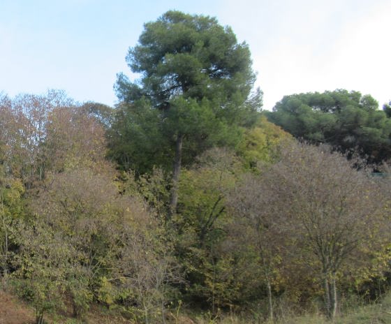Amb pi blanc a les vessants assolellades, degut als incendis forestals i amb roure martinenc a les obagues.