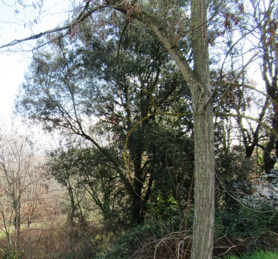 és un bosc perennifoli, verd tot l’any, amb un estrat arbori d’alzines, i un estrat arbustiu ric en lianes.