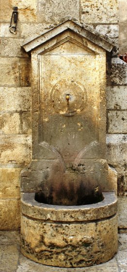 Aquesta font esta adossada en la paret d’una columna de les arcades d’una casa de la plaça Major de Besalú.