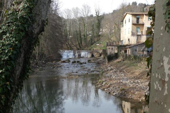 Per un costat l’aigua del Fluvià es recollida i derivada per la canal l’antic Molí de Sant Roc.