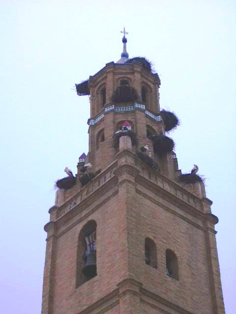 Es podien veure els nius en les torres de les Esglésies com San Salvador i Santa Maria, entre altres edificis, i en altes estructures, com a torres de telefonia mòbil, torres elèctriques, parallamps, … motivat per la manca d’arbres de grans dimensions que hi poguessin posar allí el seu gran niu.