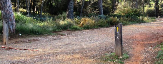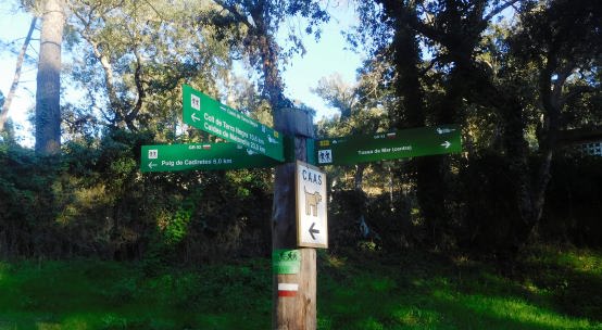 Aquí tenim un altre cas, s’uneixen en una mateix lloc tres itineraris marcats, GR., PR. i senyal groga…